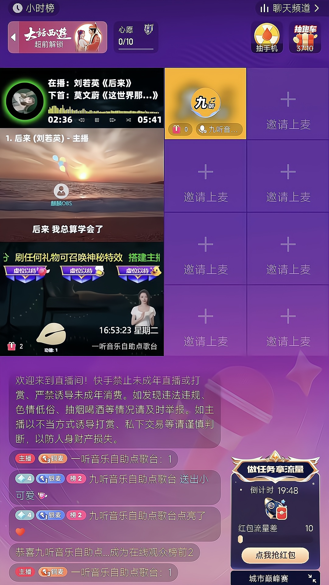 全面支持抖音直播、快手直播、微信视频号直播、哔哩哔哩直播、YY直播、网易CC直播、虎牙直播、斗鱼直播、小红书直播自助点歌台,并且已发布了直播界面,小编第一时间获取了直播间截图提供给大家欣赏:1、抖音直...