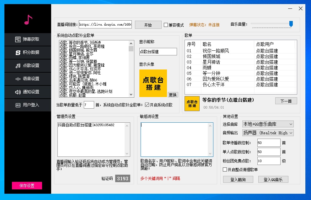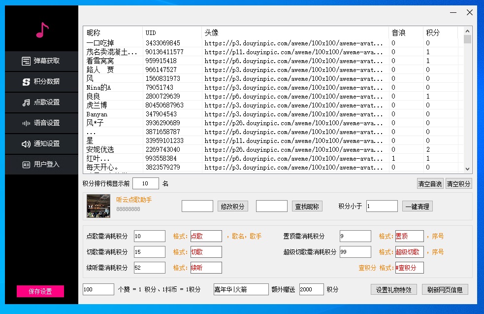 以下是听云抖音点歌助手软件界面截图: